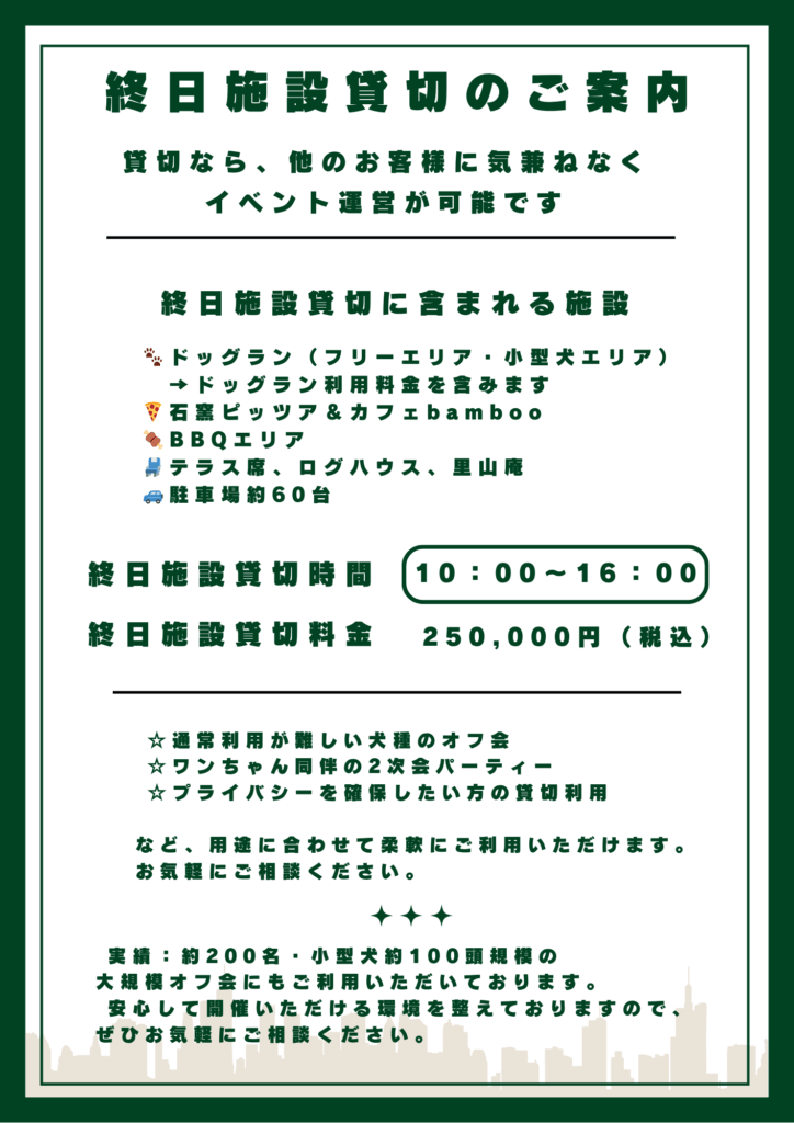 2⃣ 終日施設貸切のご案内